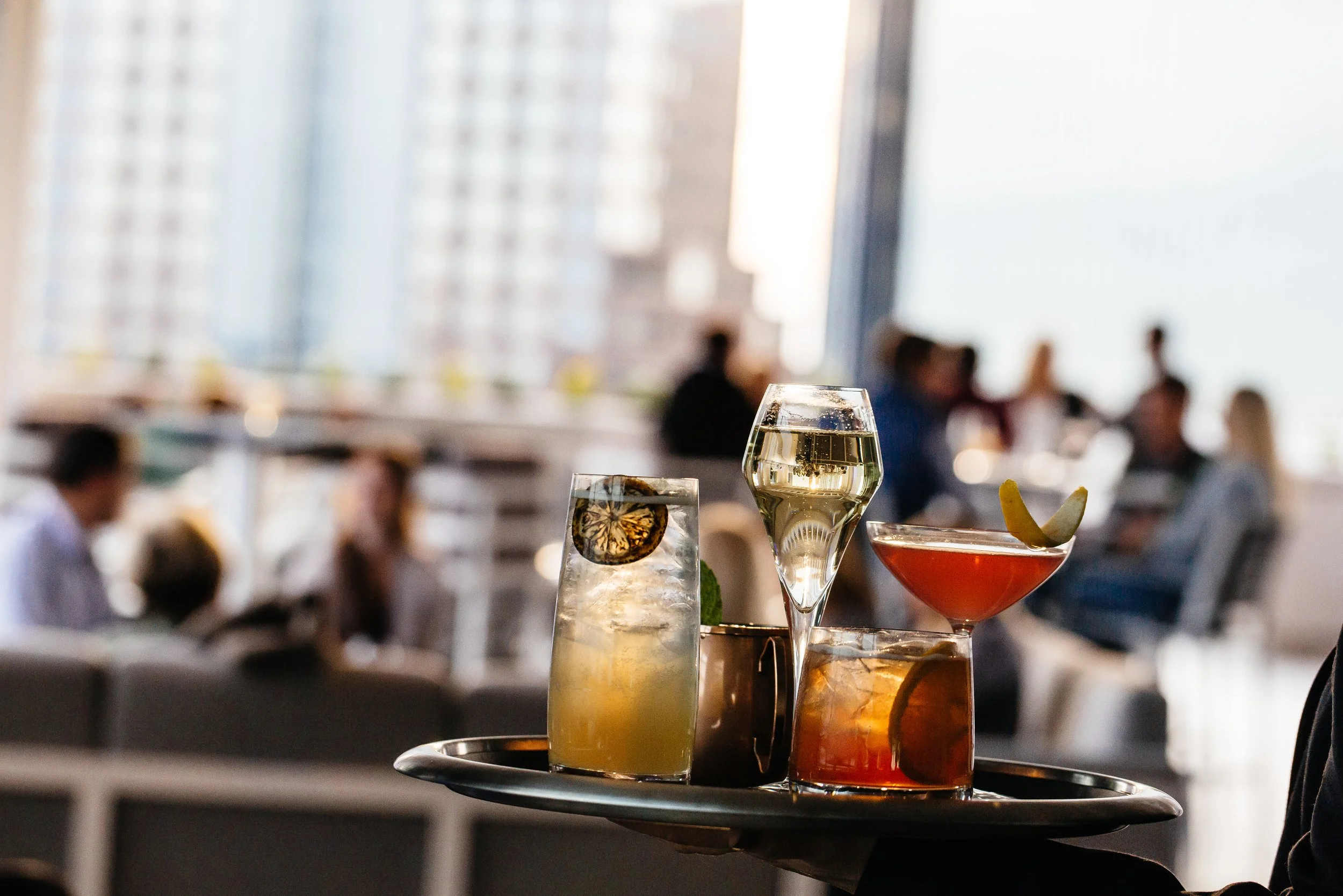 Our lounge layout includes a mix of lounge seating and high- and low-top tables, creating a reception-style experience. Nuvole does not offer traditional seated dining for semi-private reservations.